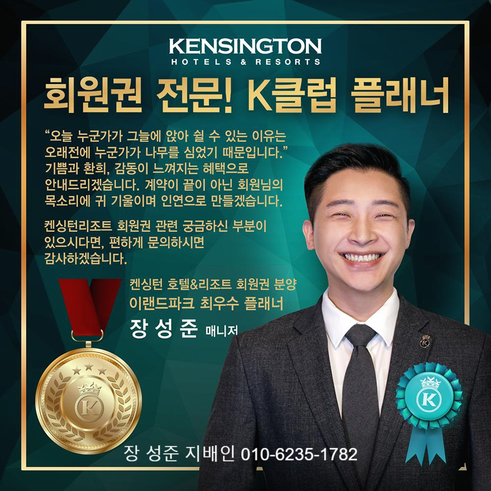 (주)이랜드파크 켄싱턴리조트 신규분양 회원 담당 장 성준 입니다.